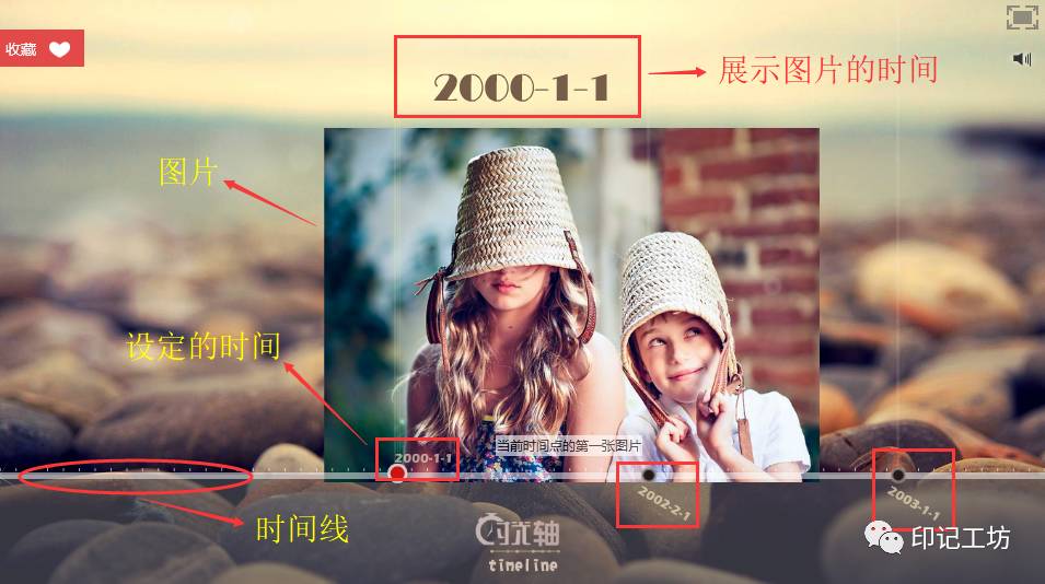 时光轴系列模版的特点是可以让用户设定图片的时间,而图片会沿着设定好的时间在时间线上完美的展现出一段旅程,也好似在讲述着一个时间的故事…。