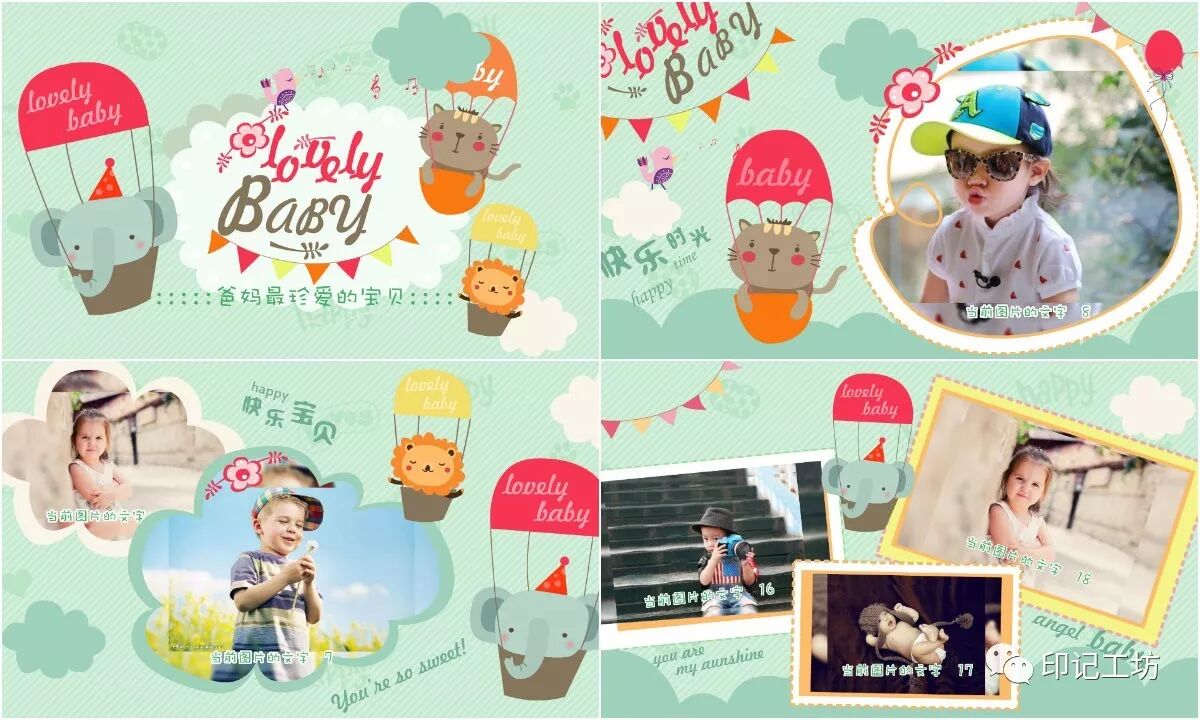 儿童卡通风格模板总是洋溢着欢快的气息,都有着童真十足的场景和萌萌的可爱风设计,并伴有精美的动画。适合于记录宝宝的成长、生日祝福等主题类型的视频相册制作。