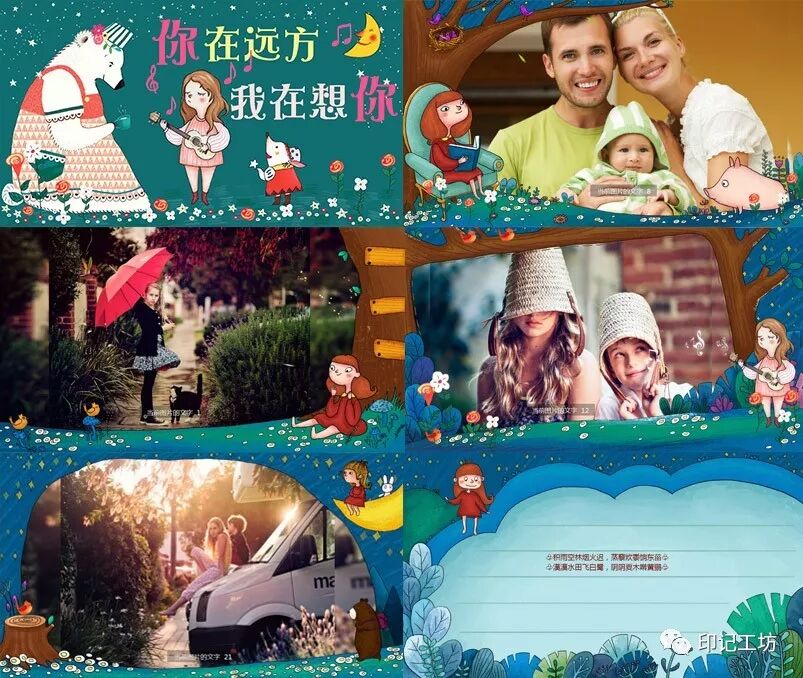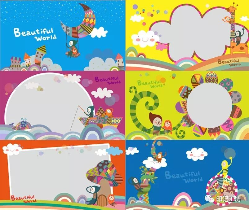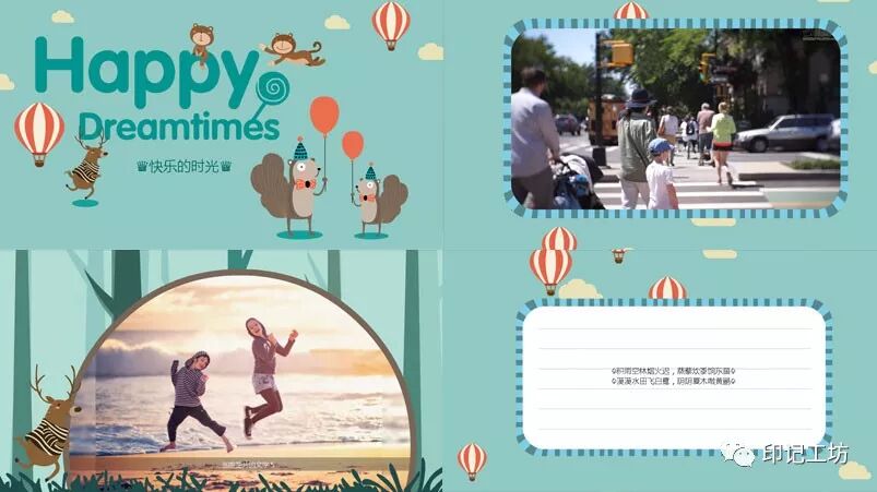 打开五彩缤纷的卡通色彩世界,宝贝天真的笑脸在富有色彩的相册边框里显得更加灿烂,点缀上森林、热气球、太阳等卡通装饰让生活更加萌动。